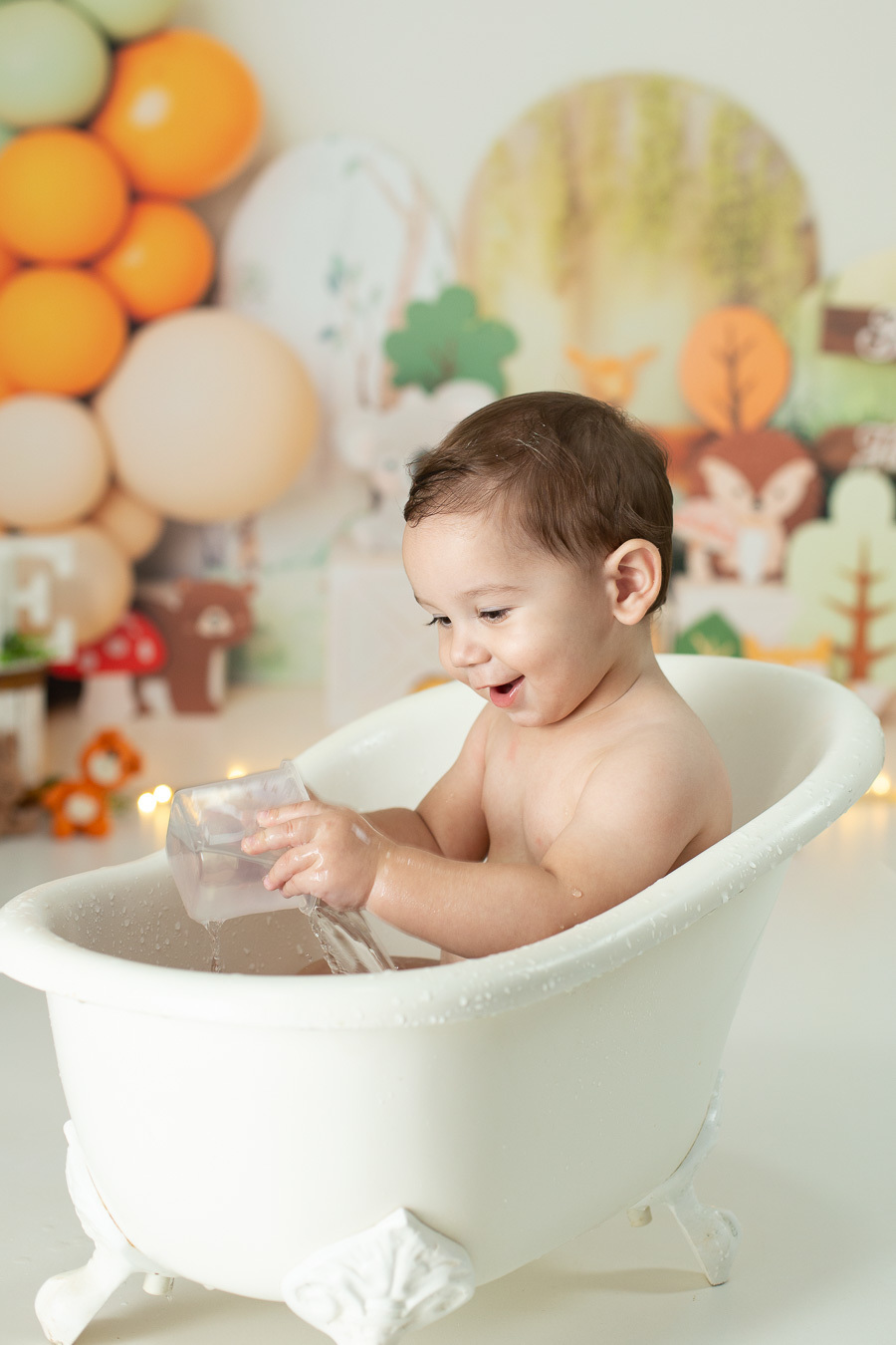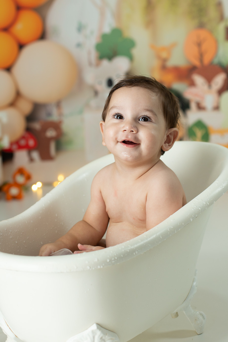 Era para ser um ensaio de Smash the Cake, porém quando relou no bolo o Pedro não gostou e chorou bastante! Mas, como sempre faço várias fotos antes do bolo e do bebê na banheirinha também, mesmo sem fotos fazendo meleca, tivemos sim MUITAS fotos lindas com bastante bagunça!