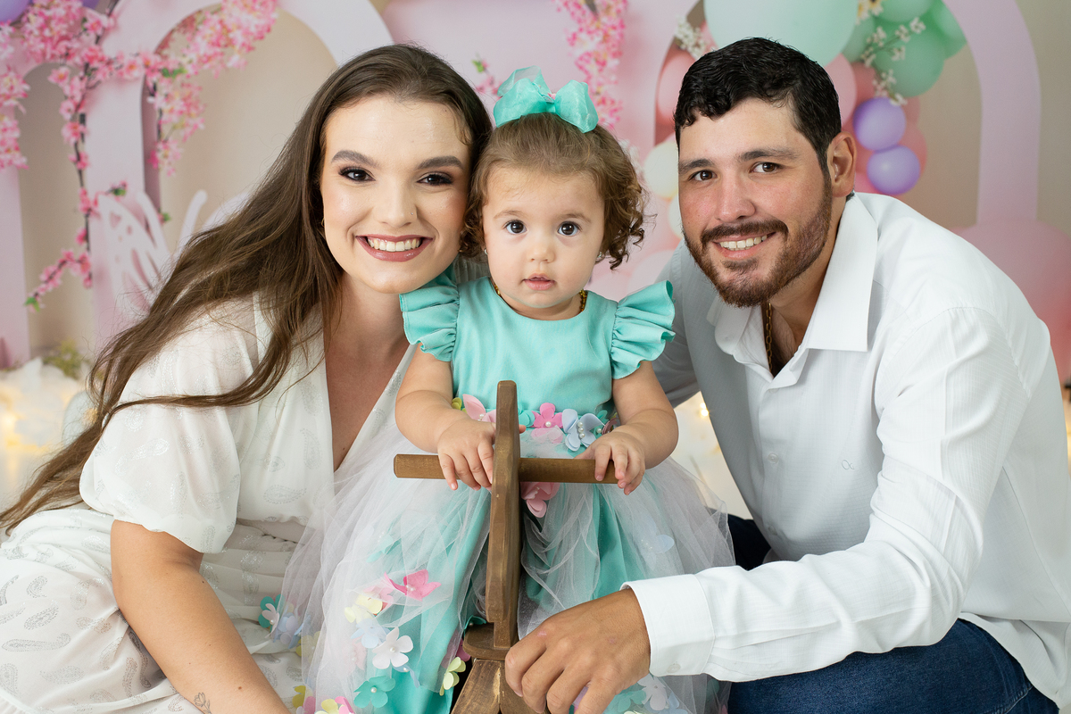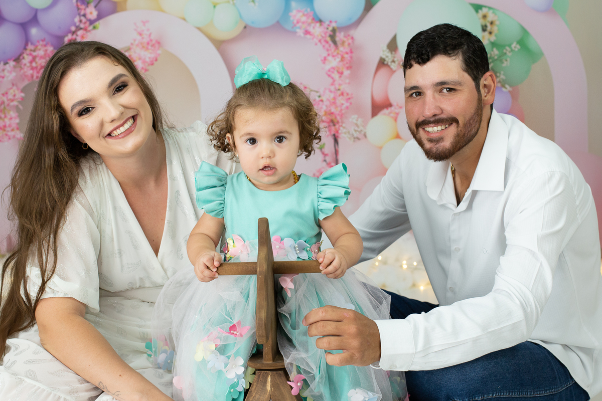 Sessão de um aninho da Manu com a mamãe e o papai ♥